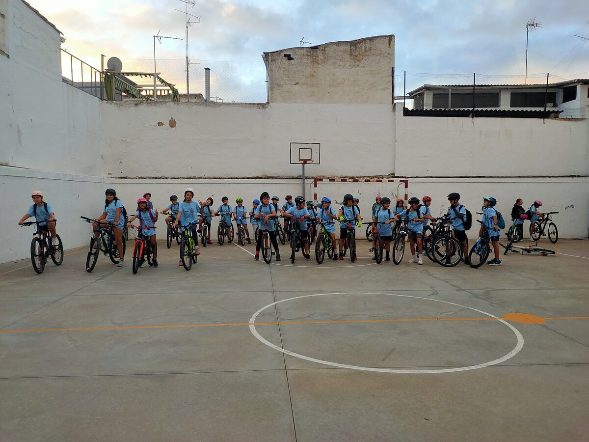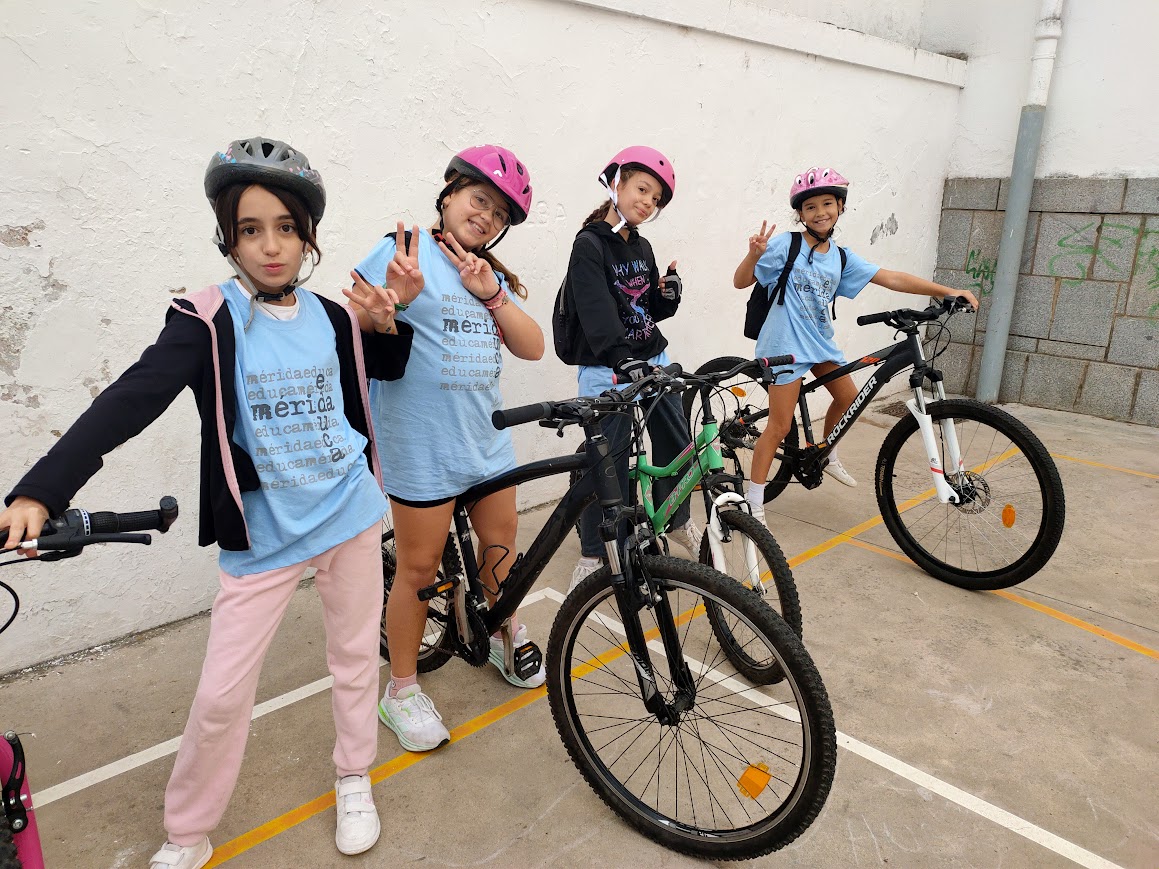 Valores como el respeto y el compañerismo se han trabajado con el deporte en el día escolar de la bicicleta junto a otros centros de Mérida.