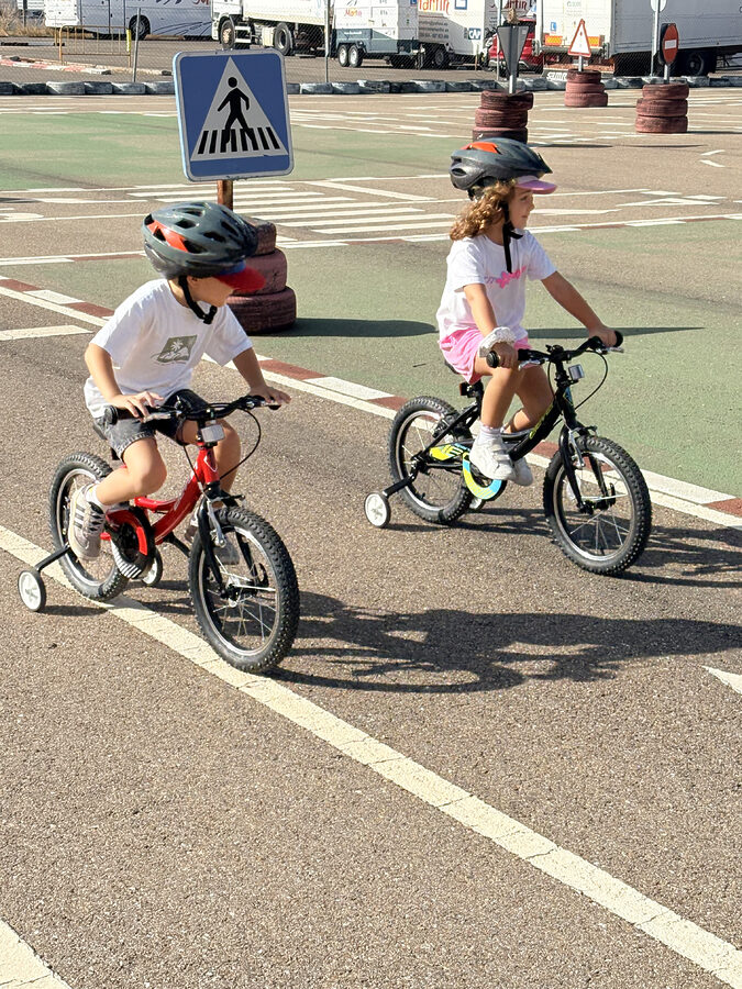 En el centro de Educación Vial nos enseñan las señales de tráfico y las funciones del peatón y el conductor, de momento…¡de bici!