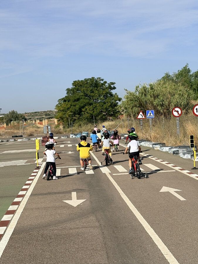 Valores como el respeto y el compañerismo se han trabajado con el deporte en el día escolar de la bicicleta junto a otros centros de Mérida.